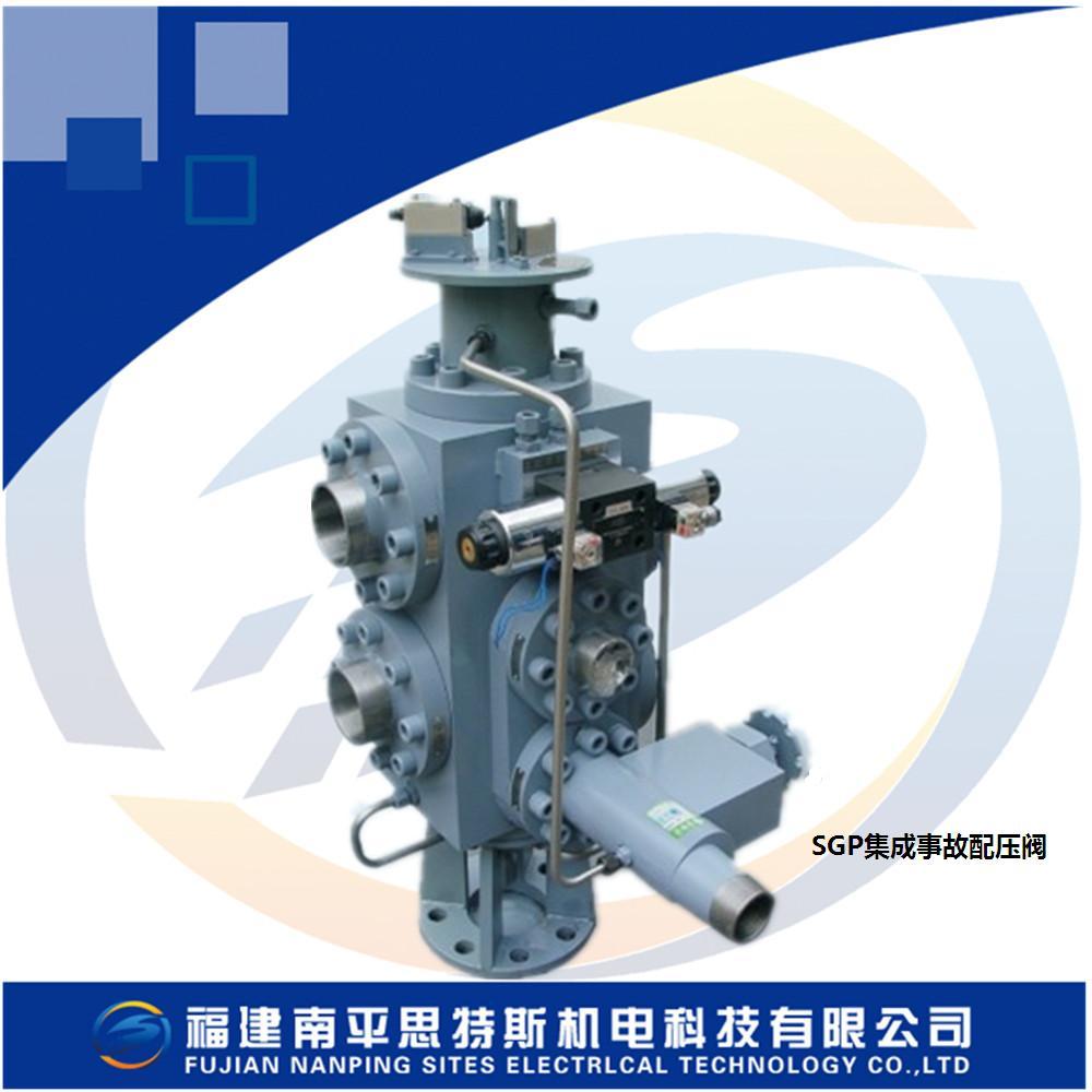 SGP集成事故配压阀是一种二位六通型换向阀,用于水电站水轮发电机组的过速保护系统中,当机组转速过高,调速器关闭导水机构操作失灵时,SGP集成事故配压阀接受过速保护信号动作,其阀芯在差压作用下换向,将调速器切除,油系统中的压力油直接操作导水机构的接力器,紧急关闭导水机构,防止机组过速,为水轮发电机组的正常运行提供安全可靠的保护。
